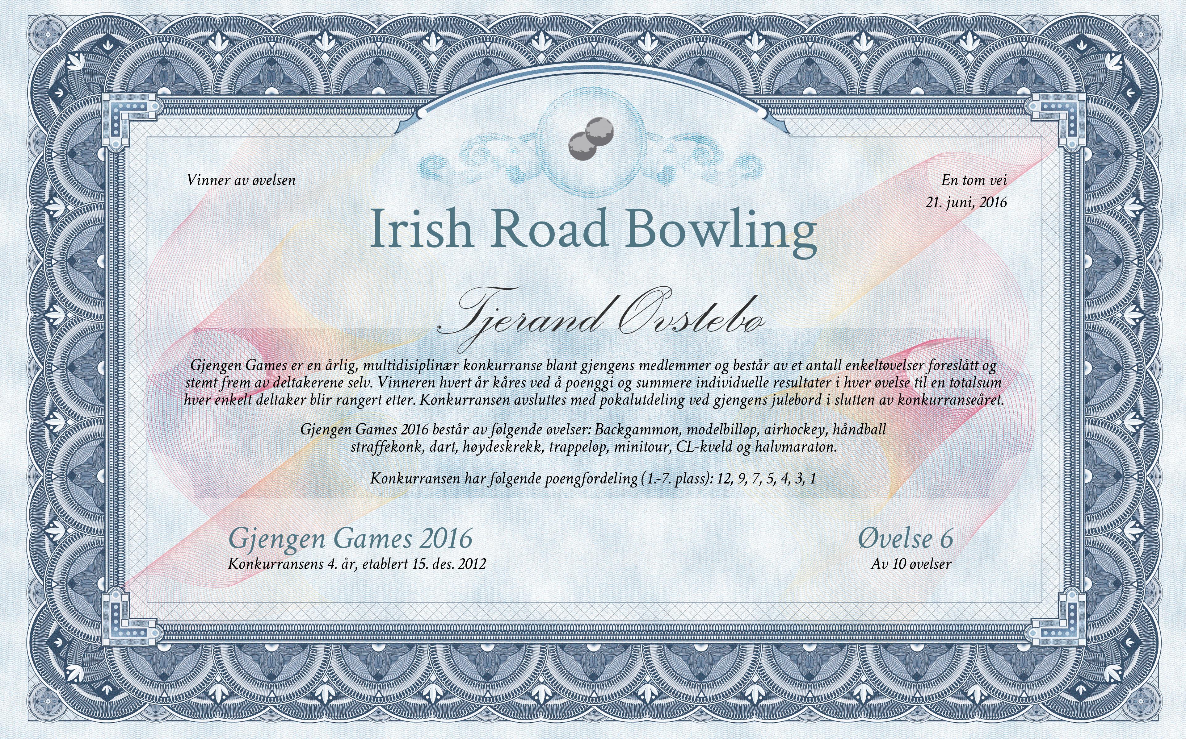 | Discipline | Irish Road Bowling |