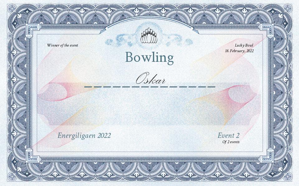 | 1 | Oskar | 161 | 25 |