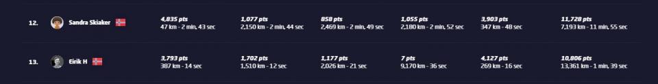 | 13 | Eirik | 6 | |