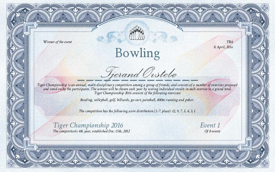 1 | Bowling | Tiger Championship 2016 |