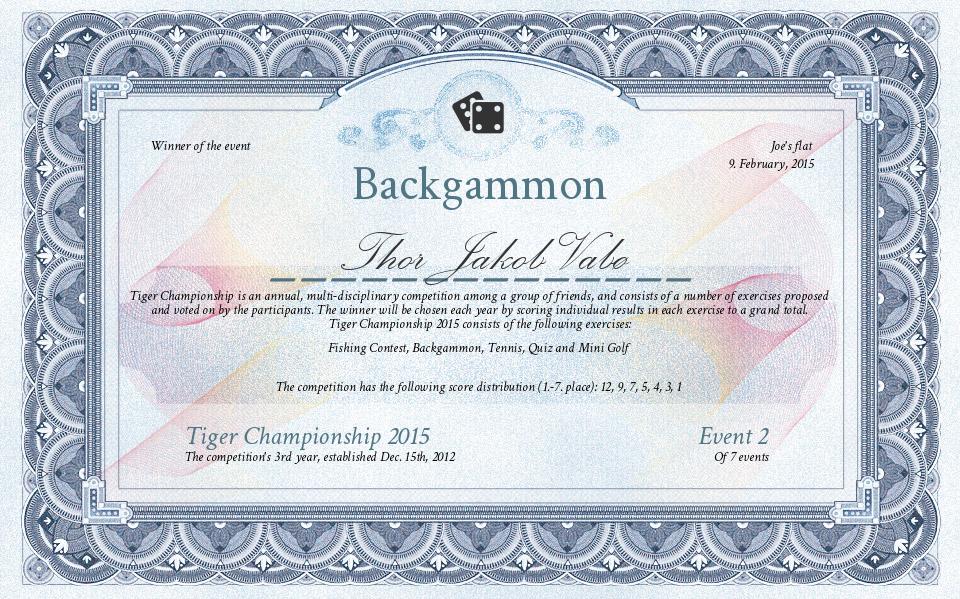 1 | Backgammon | Tiger Championship 2015 |